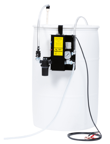 We off a applicator that hangs on the side of a 55 gallon drum (drum not included). This applicator is ideal for Forage Blowers & Baggers.